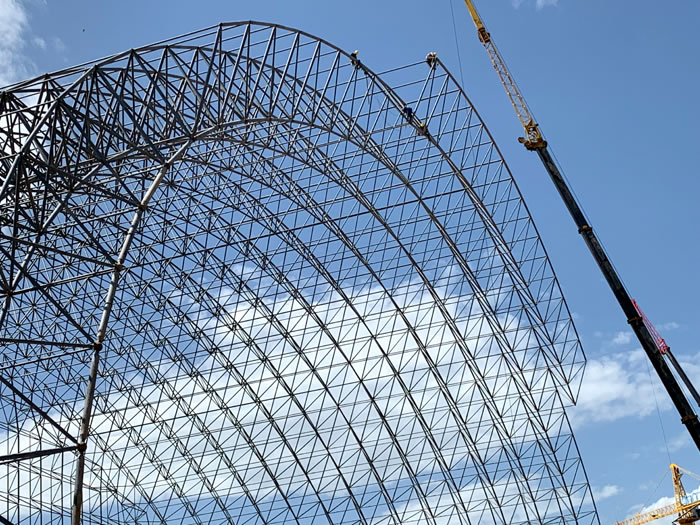(2)网架加工前应对现场尺寸进行复测,确认无误后方可进行加工、安装;网架制作、运输、安装应遵守《空间网格结构技术规程》JGJ7-2010、《钢网架灵武螺栓球节点》JG/T 10-2009、《钢网架灵武螺栓球节点用高强度螺栓》 GB/T 16939-2016、《灵武钢结构灵武工程灵武施工规范》 GB50755-2012、《灵武钢结构灵武工程灵武施工质量验收标准》 GB50205-2020。